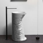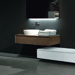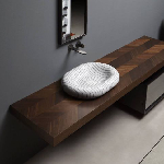 - Vasques encastrées et suspendues dans des matériaux tels que Flumood®, marbre et Cristalmood®.