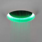 - Douchettes minimalistes intégrées aux murs et plafonds.